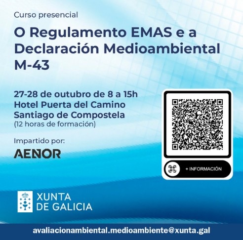 La Consellería de Medio Ambiente y Cambio Climático organiza, en colaboración con Campus AENOR, la jornada formativa Reglamento EMAS y Declaración Medioambiental (Curso M-43).