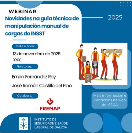 Desde el Instituto de Seguridad y Salud Laboral de Galicia (ISSGA) lo invitamos/a a participar en el webinar informativo: "Novedades en la guía técnica de manipulación manual de cargas del INSST"